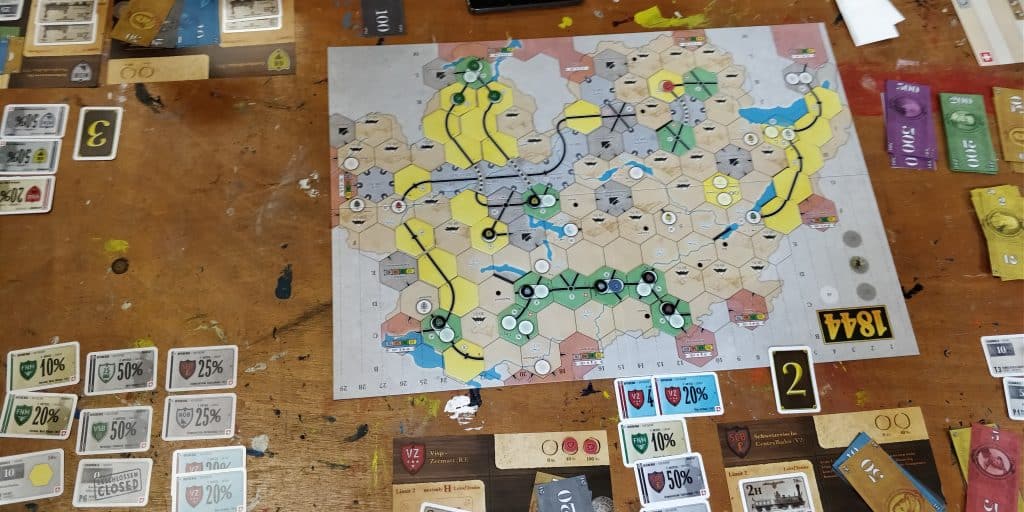 Les joueurs développent les sociétés dans lesquelles ils sont majoritaires en plaçant des rails, des gares, en creusant des tunnels et surtout en achetant des trains qu’ils exploitent pour financer la société … ou pour payer des dividendes aux actionnaires !