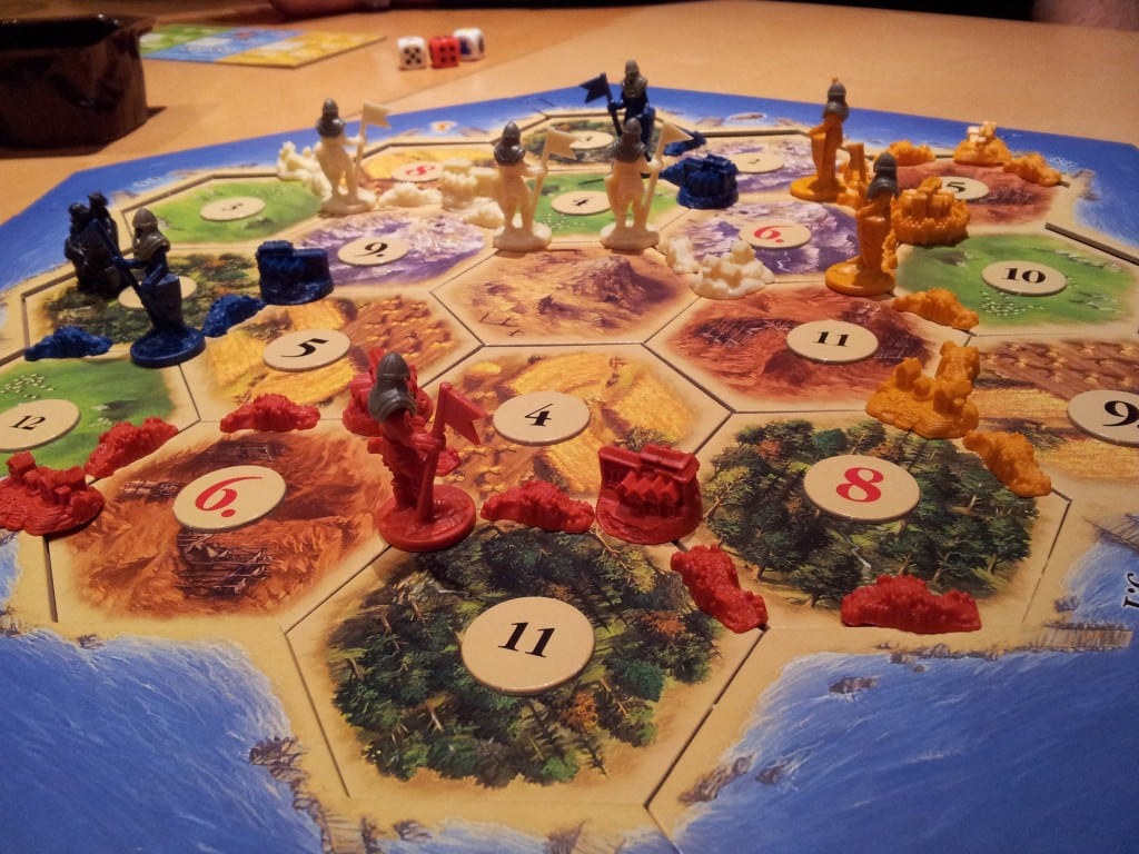 Table 2 : Fred, Véronique, Sylvie et Nicolas ont joué aux Colons de Catane, un grand classique du jeu de plateau qui n’était pas sorti depuis un bon moment de notre ludothèque.