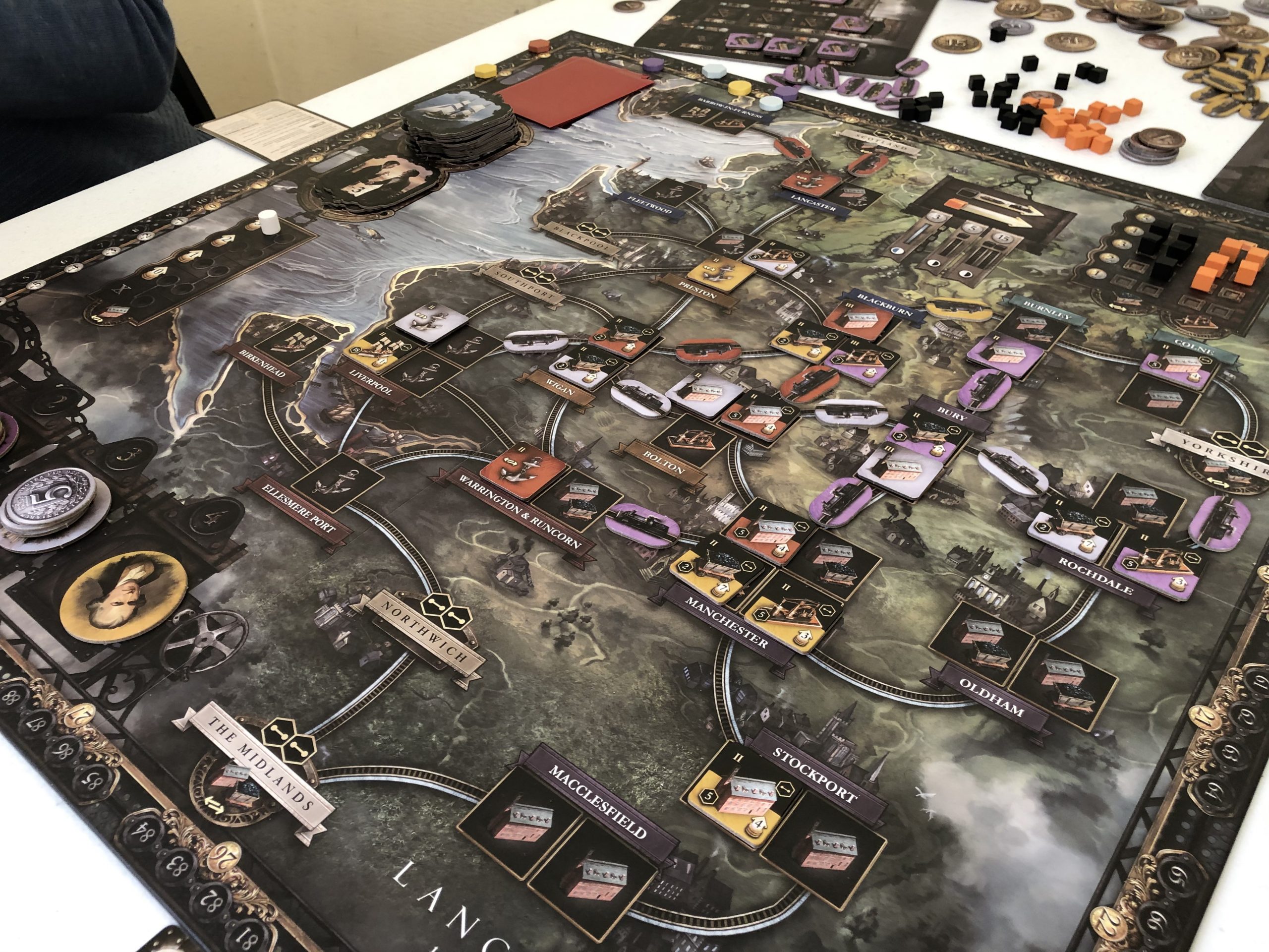 Cap sur l’ouest de l’Angleterre pendant la Révolution Industrielle, avec une partie de Brass Birmingham, le grand classique expert de Martin Wallace, pour Tibo, Julie, Laetitia et Gauthier.