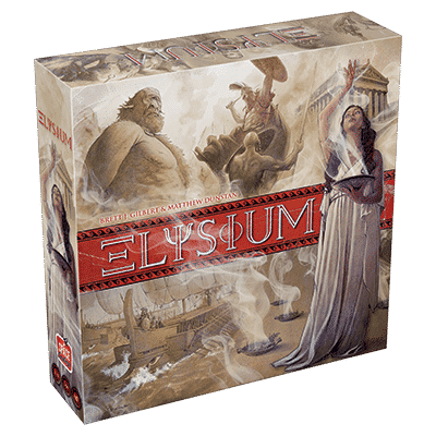 Dans Elysium vous incarnez un demi-dieu ambitieux qui cherche à prendre place au sommet de l’Olympe. Pour cela vous recrutez des héros, rassemblez des artefacts et entreprenez des quêtes héroïques pour écrire votre légende. Au cours des cinq époques du jeu (donc 5 tours), vous allez construire de puissantes combinaisons de cartes, mais aussi les détruire car les cartes doivent atteindre l’Elysium et perdre leurs pouvoirs pour vous octroyer des points de victoire.
