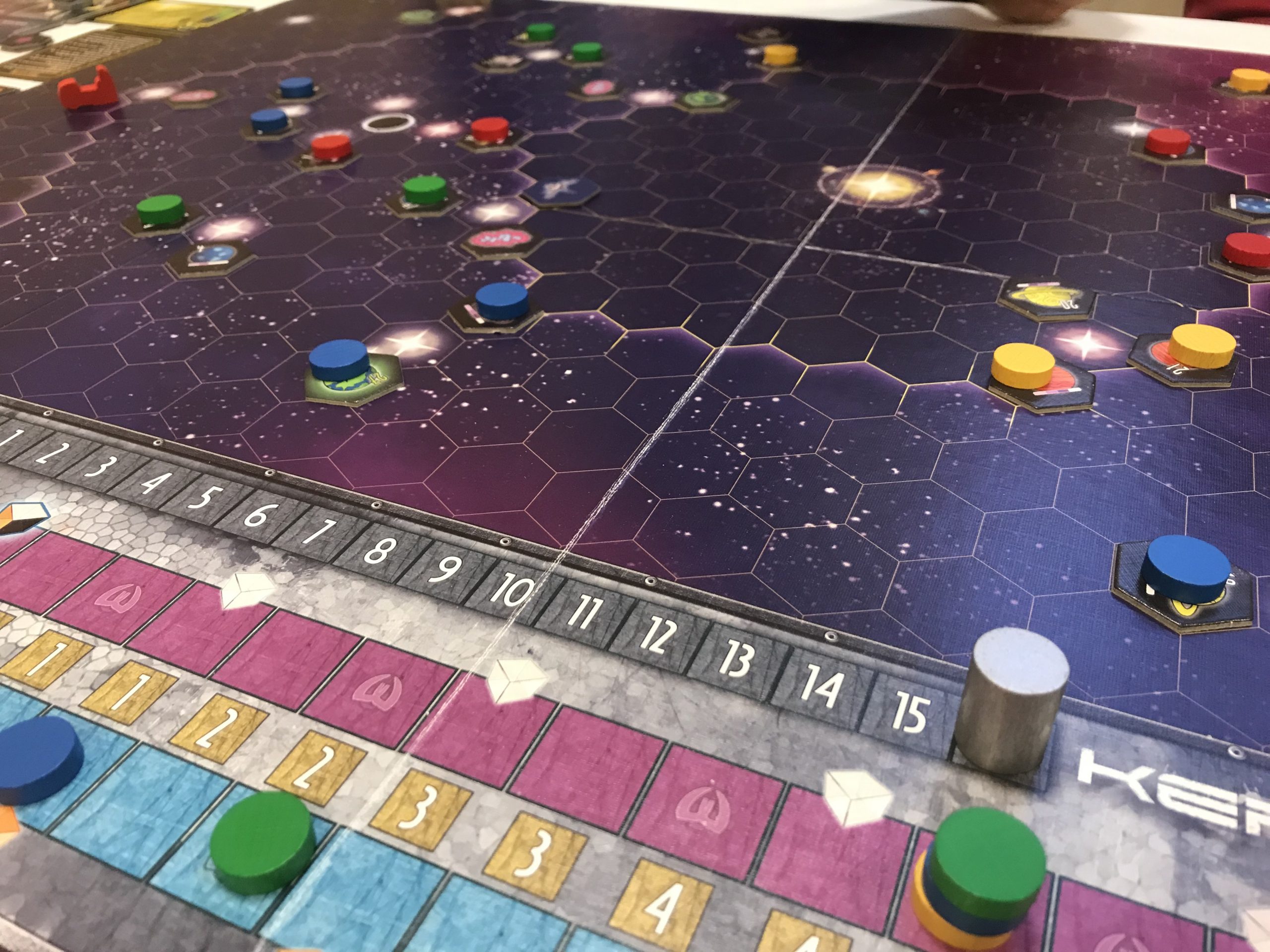 Nouvelle session et nouvelle partie de l’incontournable Dune Imperium avec une tablée expérimentée, composée de Béatrice, Fred, Sylvain G. et Ariane. Un affrontement assez surprenant et très disputé, avec peu de points de victoire mis en jeu dans les Conflits, qui s’est achevé, une fois n’est pas coutume, au 10e et dernier tour.