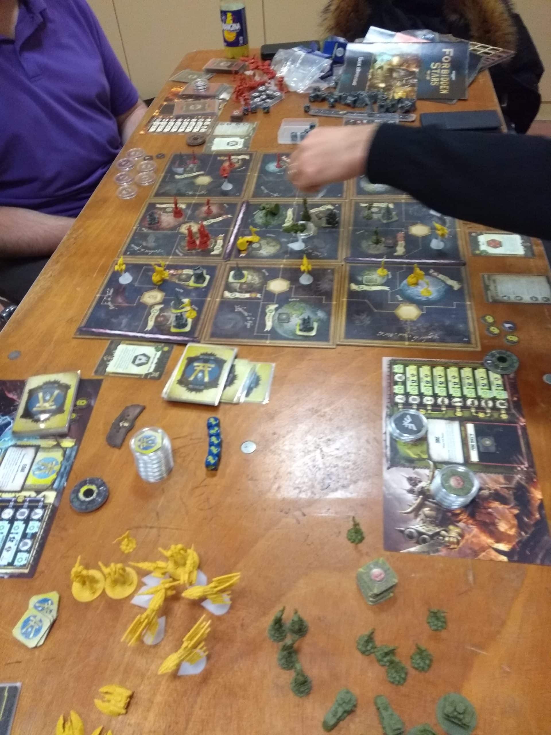 Manu, Guillaume et Vincent se sont lancés dans une partie de Forbidden Stars. Un magnifique jeu de stratégie dans l’univers de Warhammer 40k. Malheureusement ils ont manqués de temps pour finir ce jeu qui semble bien sympathique.