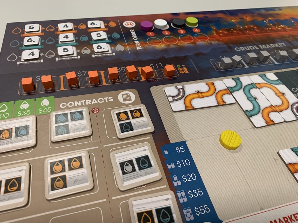Partie découverte et apprentissage du jeu Great Western Trail pour Christophe, Marie-Odile, Vincent et Stéphane. Partie non terminée.