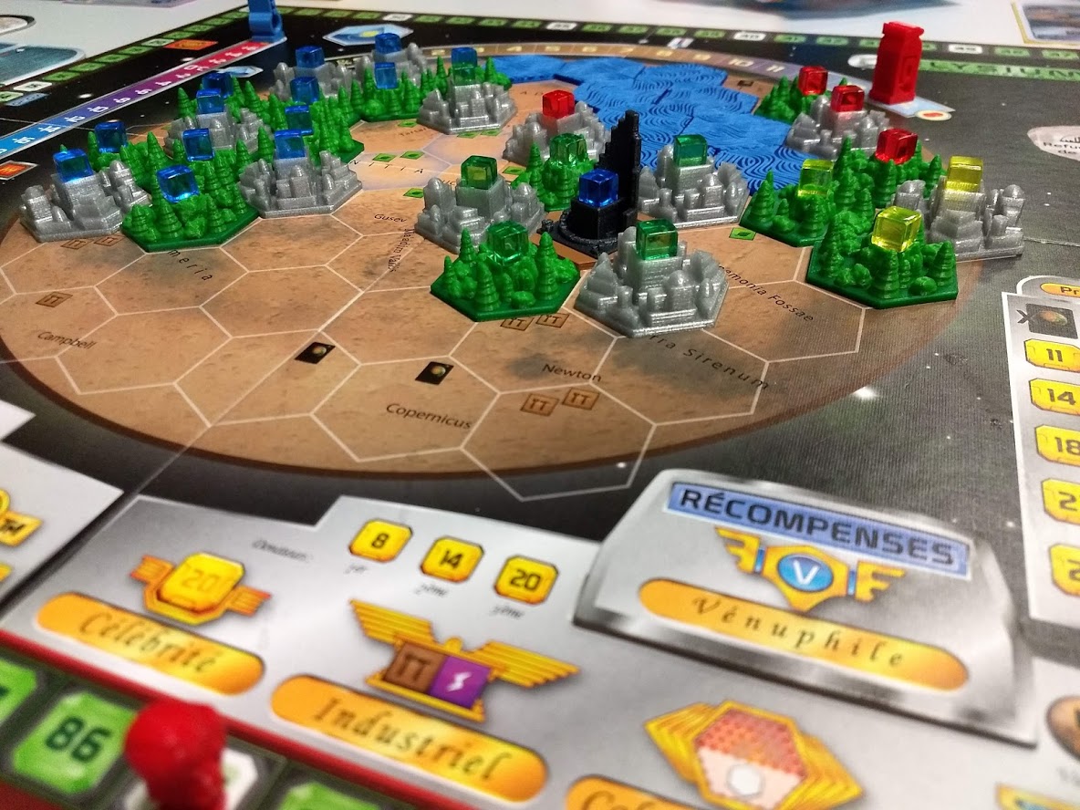 Table 4 : Émilien, Sylvain Ier, Fabrice et Pierre-Olivier ont joué à Terraforming Mars. avec l’extension Prélude et Colonies.