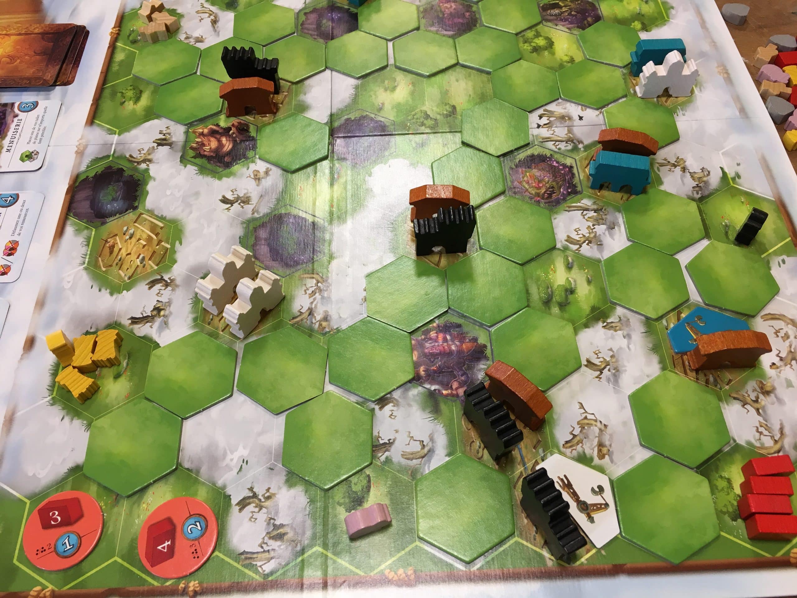 Table 1, Sylvain 1er, Olivier, Bertrand et Dylan ont joué à Via Nebula, un petit jeu de chez Space Cowboys méconnu du grand public mais très sympathique. Merci à Sylvain de nous avoir présenté ce jeu !Score final : Bertrand 24 points, Sylvain 23 points, Dylan 21 points et Olivier 18 points. Cela fuit suivi par une petite partie de Snow Tail, un jeu de course de ski. Une sorte de Flamme Rouge avec des obstacles.