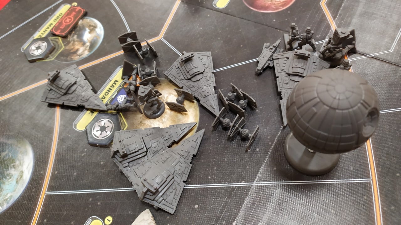 L’Empire démarre très fort, se concentrant sur l’exploration de la galaxie pour trouver la base rebelle et sur la construction de vaisseaux. Un leader rebelle est même capturé pendant 1 tour avant d’être libéré.