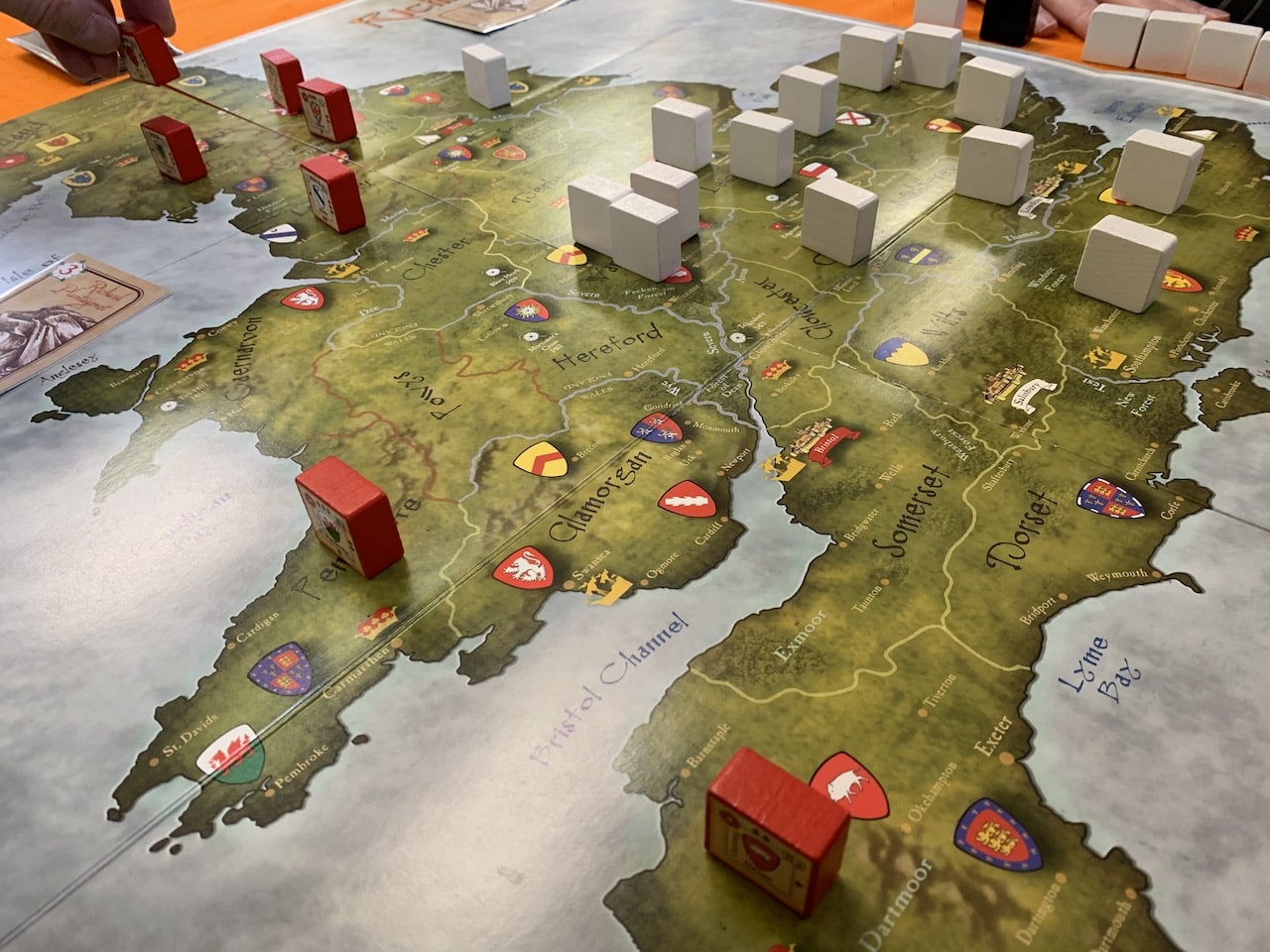 Au camp des Yorkistes s’oppose un camp Lancastrien. Chacun cherche à contrôler le trône d’Angleterre à travers des batailles rangées où la trahison des nobles présents a son rôle à jouer. Des avantages certains pour ce jeu : une fluidité, des tours qui filent vite, des règles peu complexes qui amènent à ne garder dans ce jeu que la quintessence des wargames : le positionnement stratégique et la manœuvre des groupes d’armées. Un visuel très agréable qui donne également envie d’y jouer.