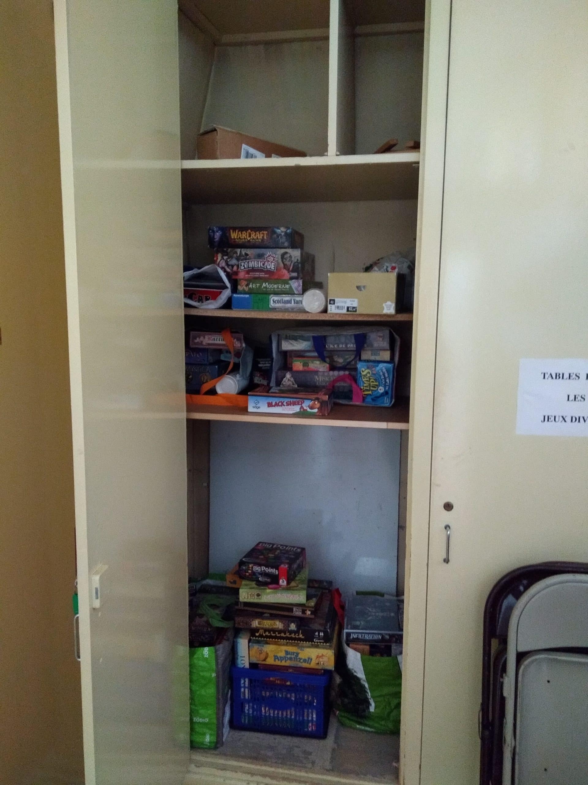 Comme vous le savez notre grande ludothèque était pleine à craquer dans notre armoire n°8 en salle 5. Constatez par vous même ci-dessous :